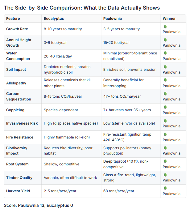 Here Is Side-by-Side Comparison: Eucalyptus vs. Paulownia